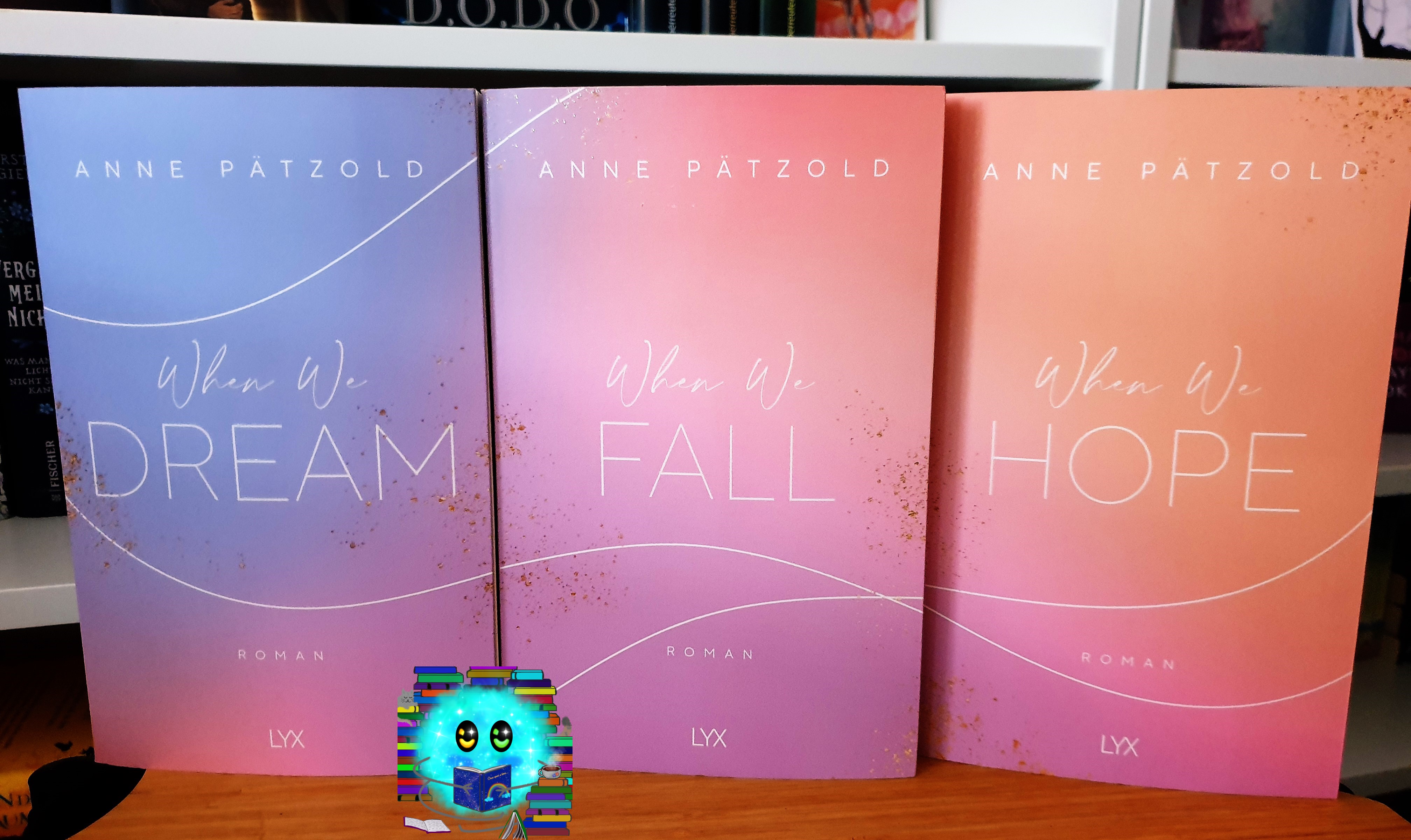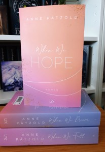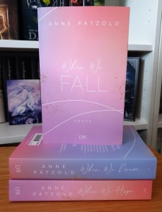 Meine Meinung: When we fall ist zwar im großen und ganzen ein typischer Mittelband, der den Bogen zwischen Aufbau in Band eins und Finale in Band 3 schließen muss, aber trotzdem hat es sich nicht wie ein reiner Füllband angefühlt. Er hatte genug eigene Handlung, um eine Daseinsberechtigung zu haben und baut die Beziehung zwischen Ella und Jae-Yomg langsam und realistisch wieder auf. Den zweiten Band habe ich im Mai diesen Jahres gesehen, als ich bereits mitten im K-Drama Fieber war und daher auch vermehrt K-Pop gehört habe. War es für mich vorher in Band 1 nicht störend, war die Thematik jetzt ein großer Pluspunkt für mich. Man merkt, dass sich die Autorin mit der Branche befasst hat und neben den positiven Seiten, eben auch die Schattenseiten aufzeigt. Die Geschichte konnte mich noch immer mitreißen und so flog ich nur die Seiten.