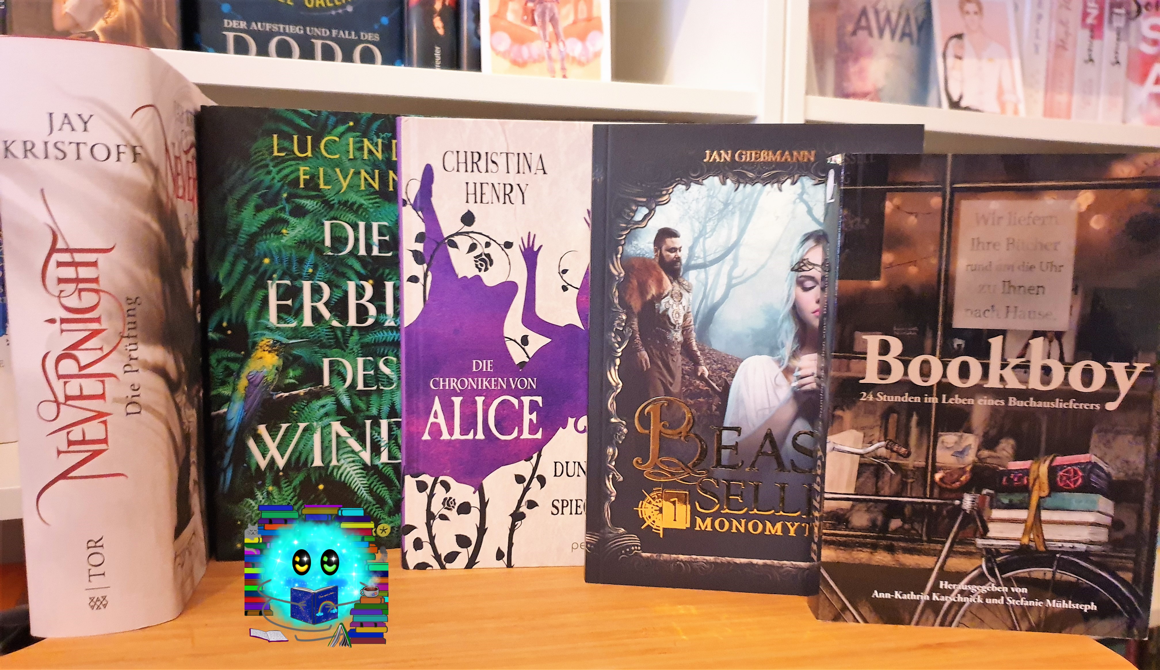 Herzlich Willkommen zur fünften Ausgabe der buchigen Handvoll in diesem Jahr. Heute mit: einer todbringenden Prüfung, einem magischen Smartphone, Dunkelheit im Spiegelland, einer windigen Erbin und einem Fahrradkurrier für Bücher.