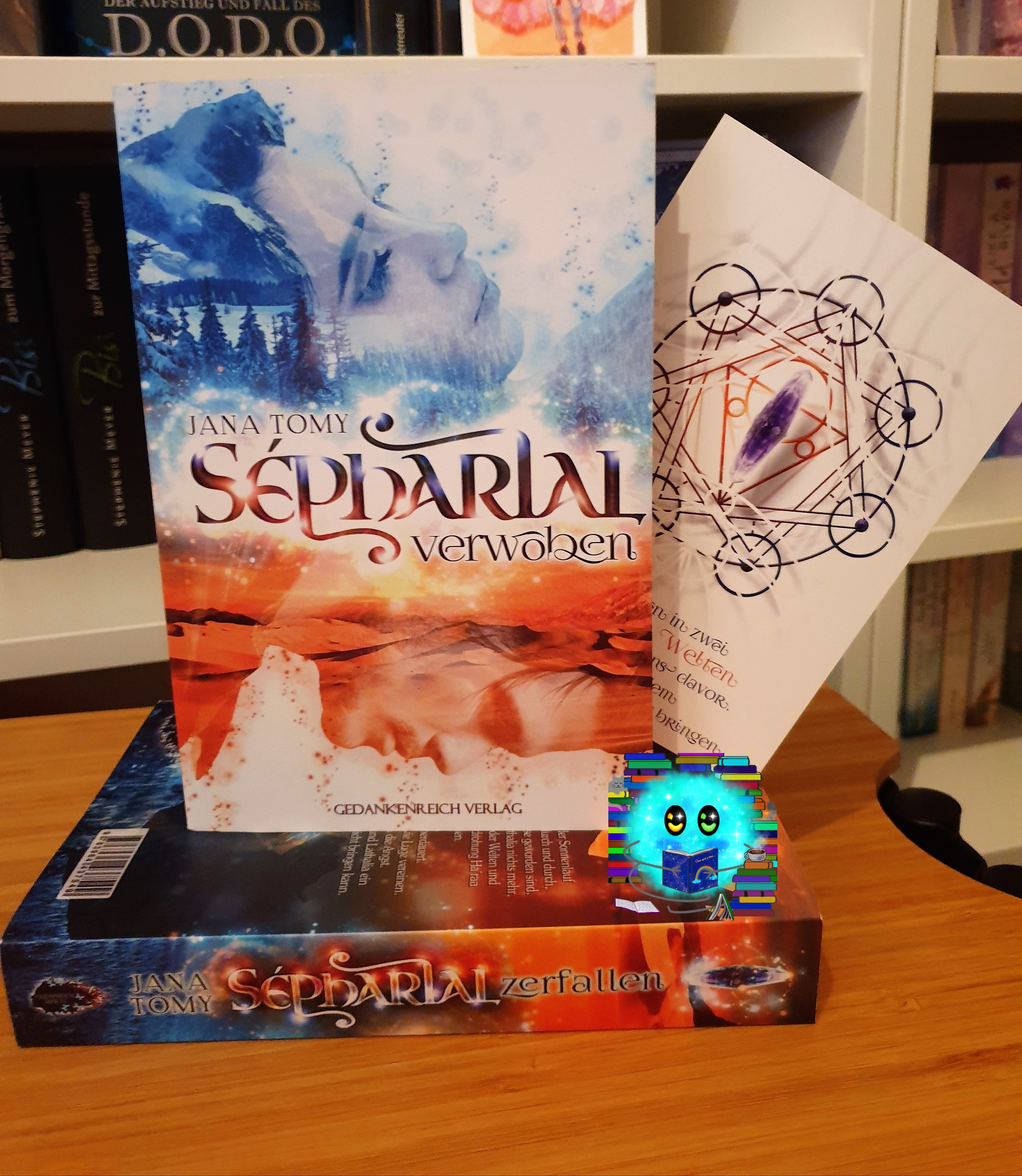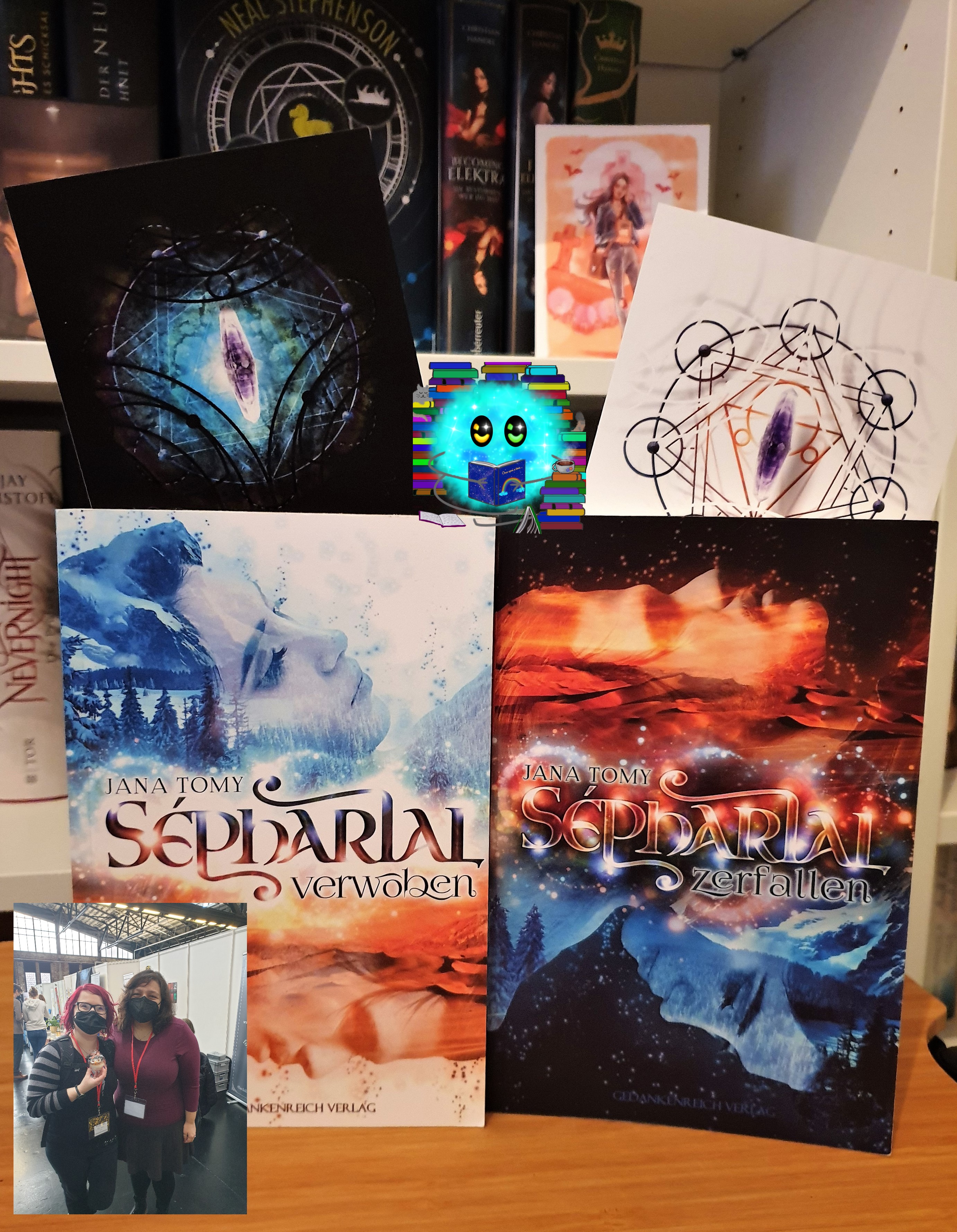 Meine Meinung: Auf der Buch Berlin war dann meine erste Anlaufstelle der Stand der Autorin. Band 2 musste her. Dennoch dauerte es jetzt noch eine ganze Weile bis ich endlich dazu kam, es auch zu lesen. Der Einstieg verlief sehr gut, auch wenn zwischen den Bänden ein bisschen Zeit vergangen war. Grundsätzlich hatte ich das Gefühl, dass der Schreibstil im zweiten Band noch etwas flüssiger war. Jana Tomy schaffte es schon vorher mit Worten wunderschöne Bilder zu malen, doch das Wechselbad der Gefühle, durch das sie uns diesmal schickte, ging mir nochmal näher. Zwischendurch habe ich echt gezweifelt, ob sie die ganzen Konflikte und Parteien irgendwie zu einem runden Finale bringen kann, doch genau das schafft sie. So verbindet Sepharial eine spannende Geschichte in zwei gut ausgebauten Fantasywelten mit tollen Charakteren, einer guten Portion Tod und Verderben, einem Schuss Romantik und das ganze gespickt mit einem sehr bildhaften Schreibstil.